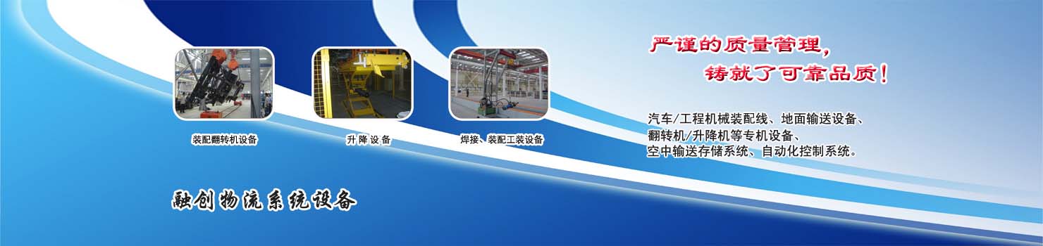 無錫市融創(chuàng)物流系統(tǒng)設(shè)備有限公司專業(yè)從事物流輸送設(shè)備、各類裝配流水線設(shè)備、各類生產(chǎn)非標(biāo)專機(jī)設(shè)備和自動(dòng)化控制系統(tǒng)的專業(yè)生產(chǎn)企業(yè)。廣泛應(yīng)用于轎車、卡車、客車、各類工程機(jī)械、發(fā)動(dòng)機(jī)、車橋、農(nóng)業(yè)機(jī)械、郵政、家電等行業(yè) ...... >> more >>